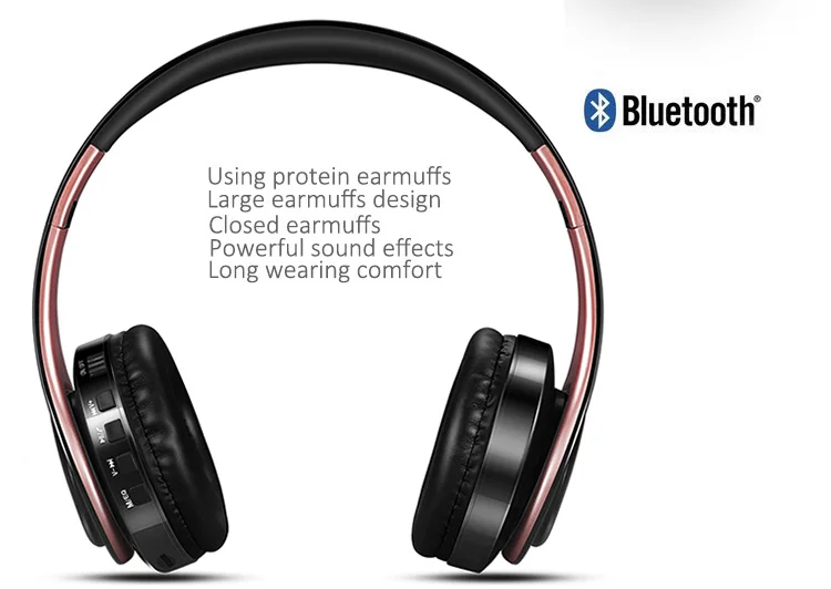 .Галерея из Бесплатная доставка Новые золотые цвета Bluetooth наушники беспроводные стерео гарнитуры наушники с микрофоном/tf-картой